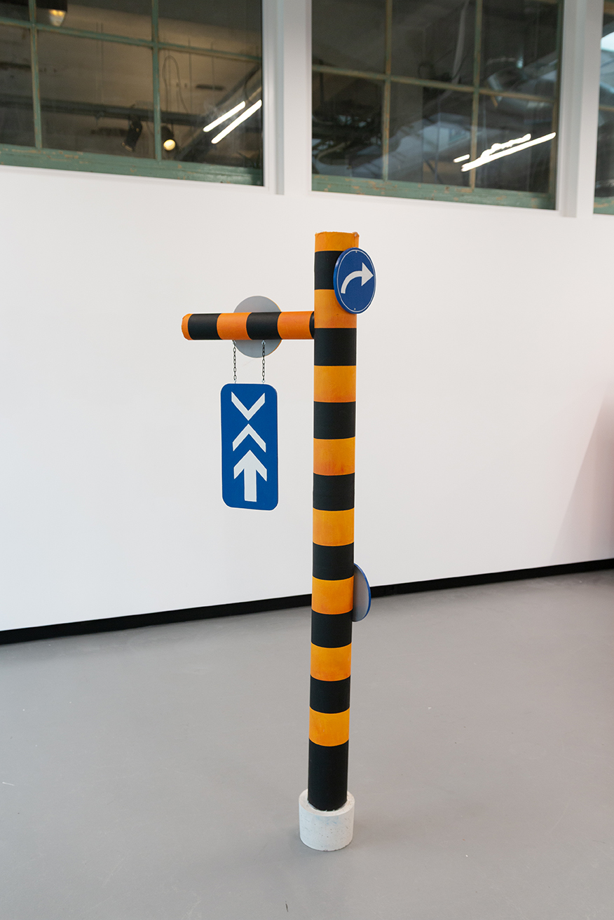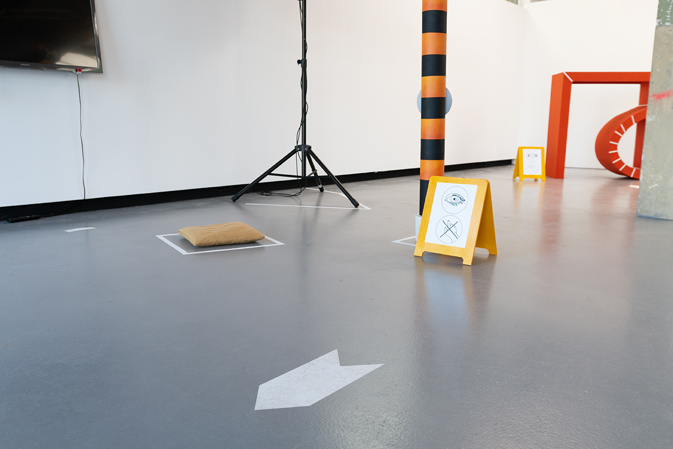 This work arose during a three-month residency at Expo Bart, Nijmegen. The audience was invited to move through the space, as they do in public spaces. Some of the works were interactive, for example, the orange work. Within this work was a soundscape hearable. Speakers were installed within the top and side walls of the installation, which makes sounds heard in public spaces. These sounds I collected within a few years.